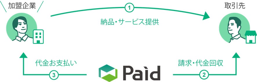 「Paid」を導入することで、加盟企業にとっては請求業務や未入金のリスクがなくなり、取引先企業はキャッシュフローが安定するメリットがあります。決済にかかる負担をなくし、取引だけに集中できる環境を「Paid」は創出しています。