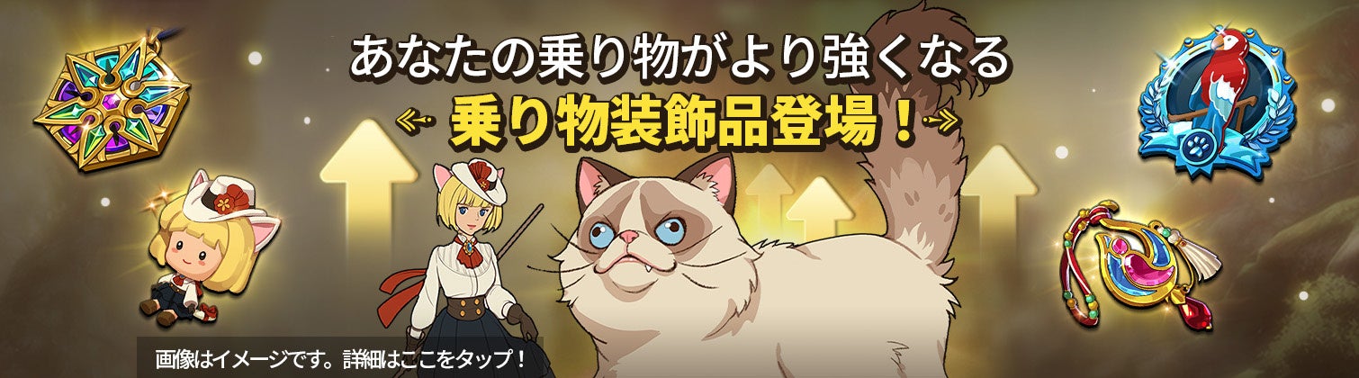 本アップデートにて、乗り物に装飾品を装着できるシステムを追加いたしました。各乗り物に追加された4つの装飾品装着スロットにはそれぞれ固有のタイプがあり、合致する装飾品だけが装着できます。乗り物に装飾品を装着することで、装飾品の戦闘力が乗り物に適用されます。