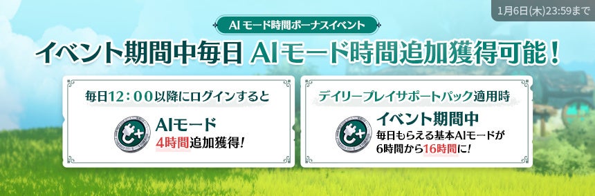 イベント期間中、毎日12:00にメールボックスに「基本 AIモード4時間分」を支給いたします。