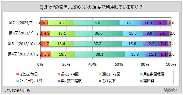 マイボイスコム株式会社(東京都千代田区、代表取締役社長:高井和久)は、7回目となる『料理の素』に関するインターネット調査を2024年7月1日~7日に実施しました。