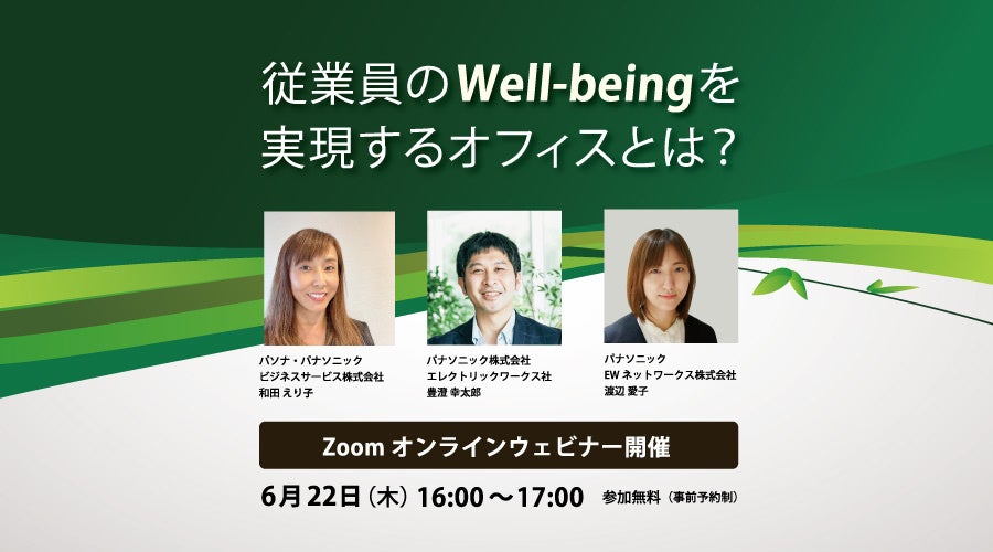 そこでこの度PBSは、パナソニック、パナソニックEWネットワークスと共にウェビナーを開催。従業員のウェルビーイングを向上させるオフィスづくりを支援する3社が登壇し、オフィスを評価する国際的な認証「WELL認証」※に関する解説をはじめ、アフターコロナにおけるオフィスコンセプトの作り方などについて、具体的な事例を交えてご紹介いたします。