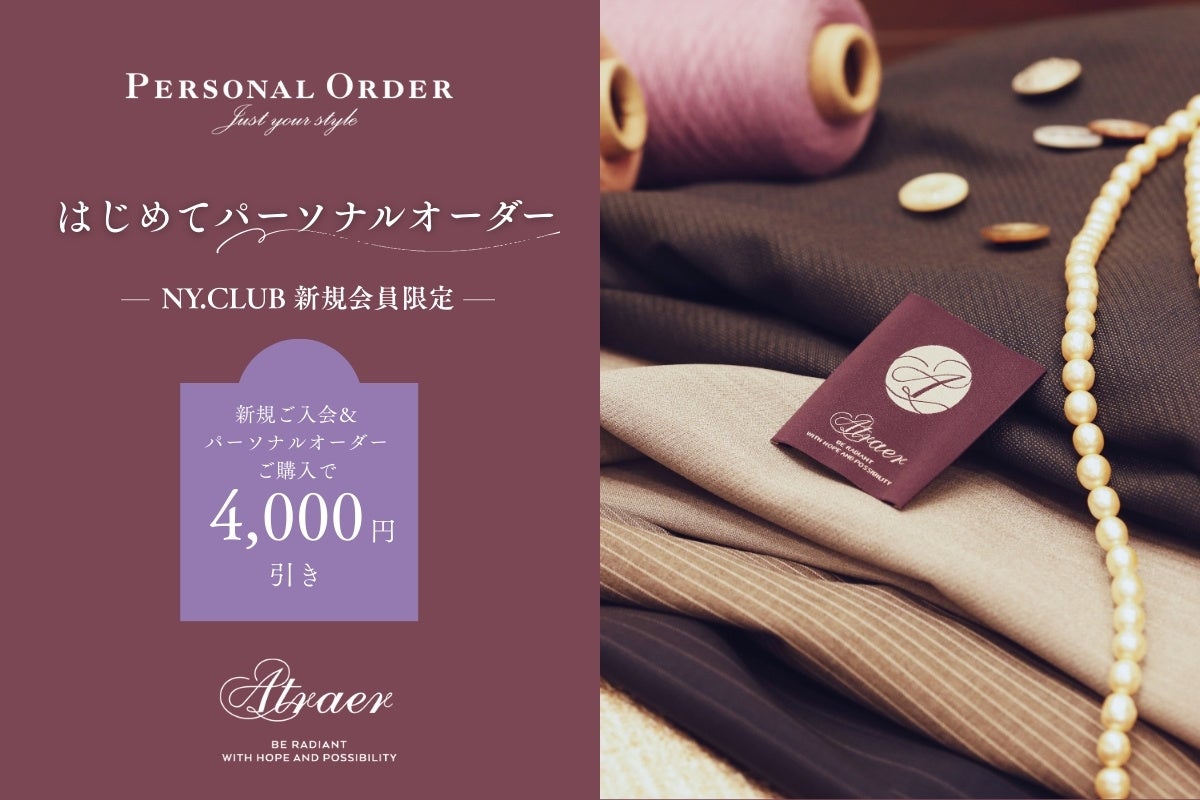 対象:NY.CLUBにご入会、パーソナルオーダーブランド「アトラエル」をはじめてオーダーいただいたお客様。