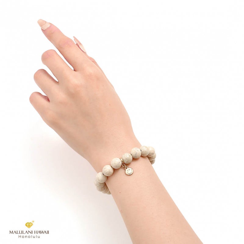 数珠ブレスレットにお付けするチャームは、ハワイの言葉を刻んだ5種類のチャームと、Malulaniと刻印のオーバルチャームからお選びいただけます。