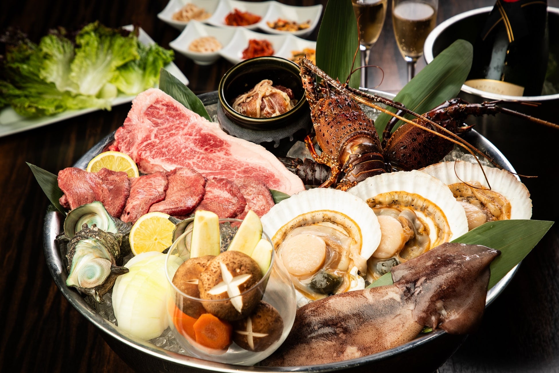 国産蔵王牛、牛タン、伊勢海老、さざえ等の高級食材をそろえたプレミアムなBBQコース