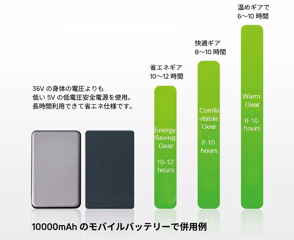 - モバイルバッテリーを接続すれば、屋外や暖かくない場所でも長時間使用も可能