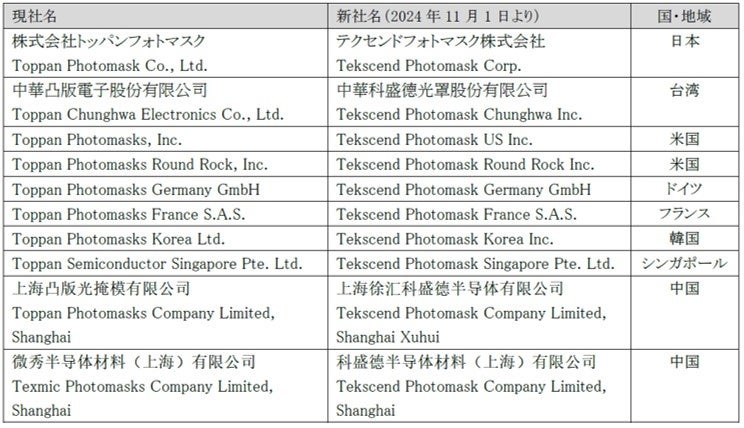トッパンフォトマスク、「テクセンドフォトマスク株式会社」に社名を変更