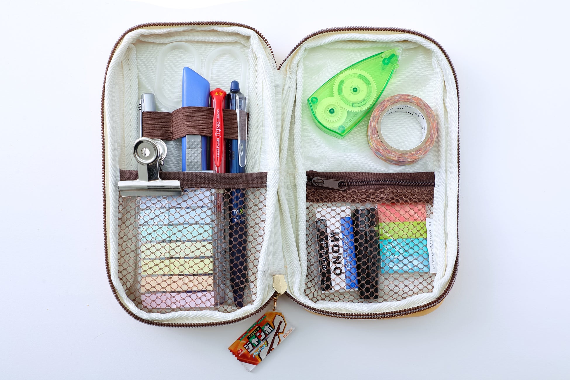 ガバッと開けて収納しやすい!文具ケース、ガジェットケース、コスメポーチなど使い道いろいろ♪