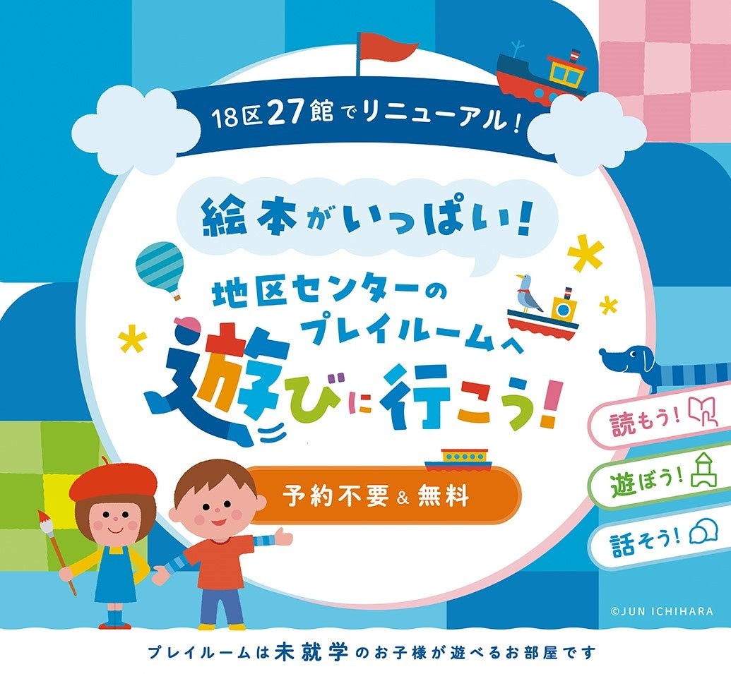 子育てしたいまちヨコハマの実現に向け、「親子が楽しみながら絵本とふれあえる空間」と「親子が気軽に利用できる居場所」をコンセプトに、横浜市内18区27館の地区センターのプレイルームをリニューアルしました。
