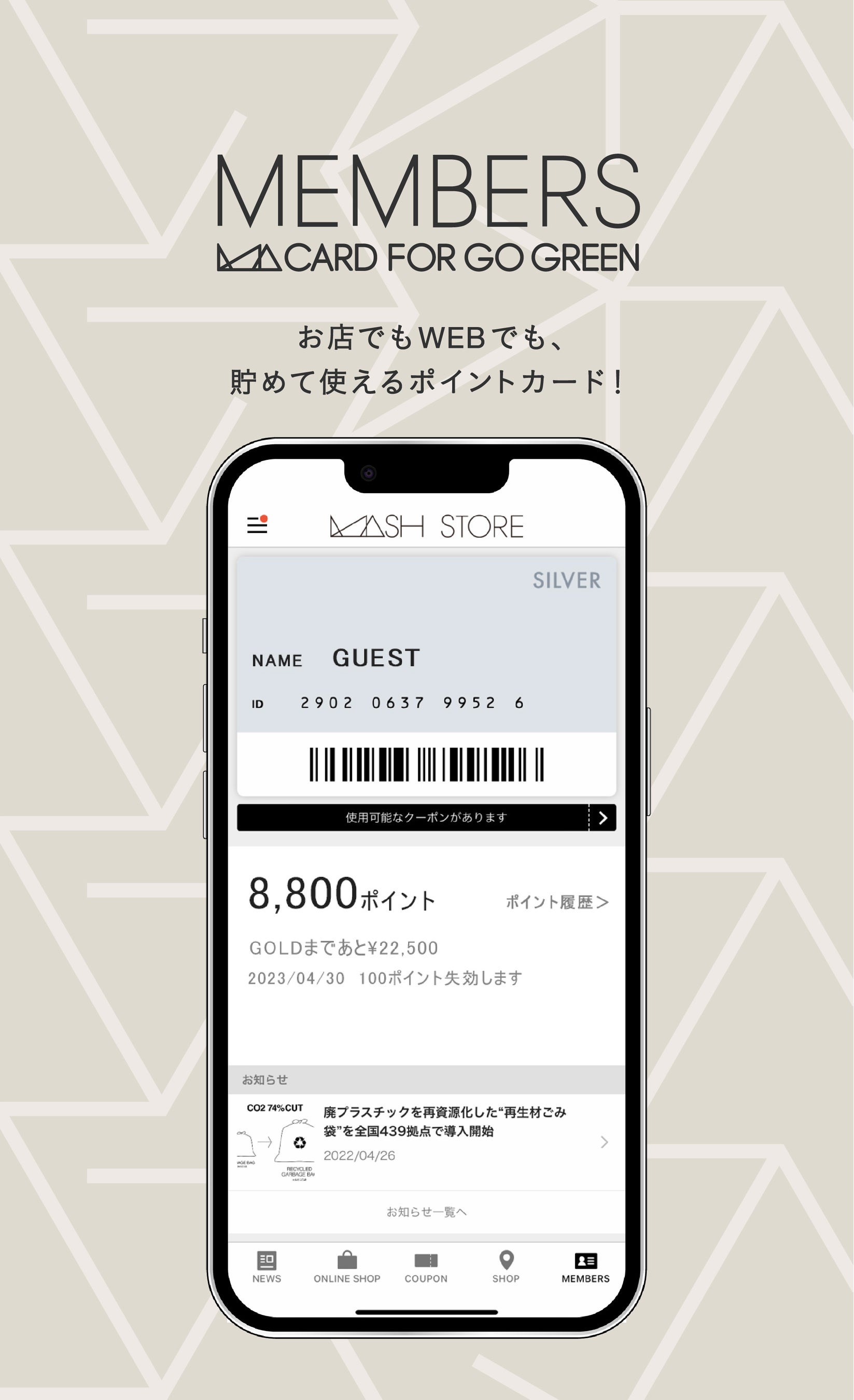 - マッシュグループの会員カード「MA CARD FOR GO GREEN」を完全デジタルで利用可能