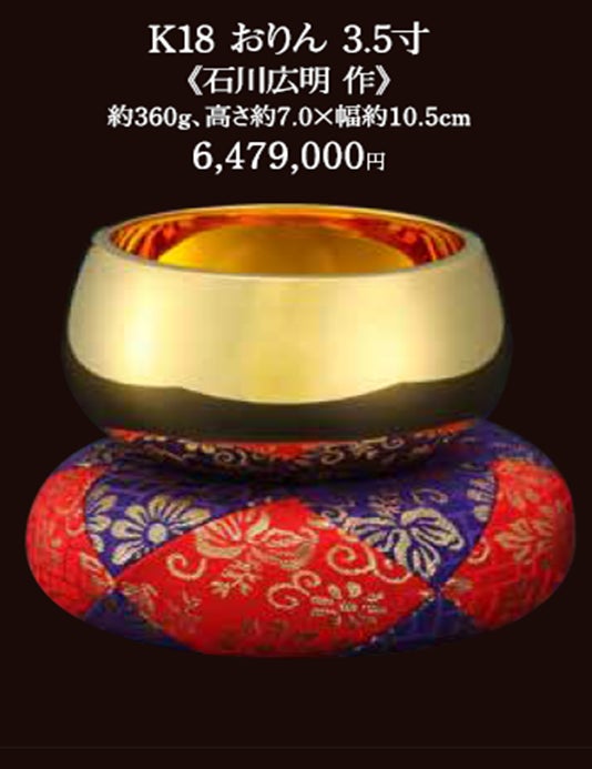 人気のおりんをはじめとする仏具、和洋食器・小判・置物、ユニークなキャラクター像など多数の製品を展示・販売いたします。おりんの「りーん」となる音色は、極楽浄土まで響き、仏様の耳に届くと伝えられています。SGCのおりんは、すべて手作りのため、ひとつひとつ音色が異なります。心に響く澄んだ音、きれいな余韻、お好みの音色をお選びいただけます。