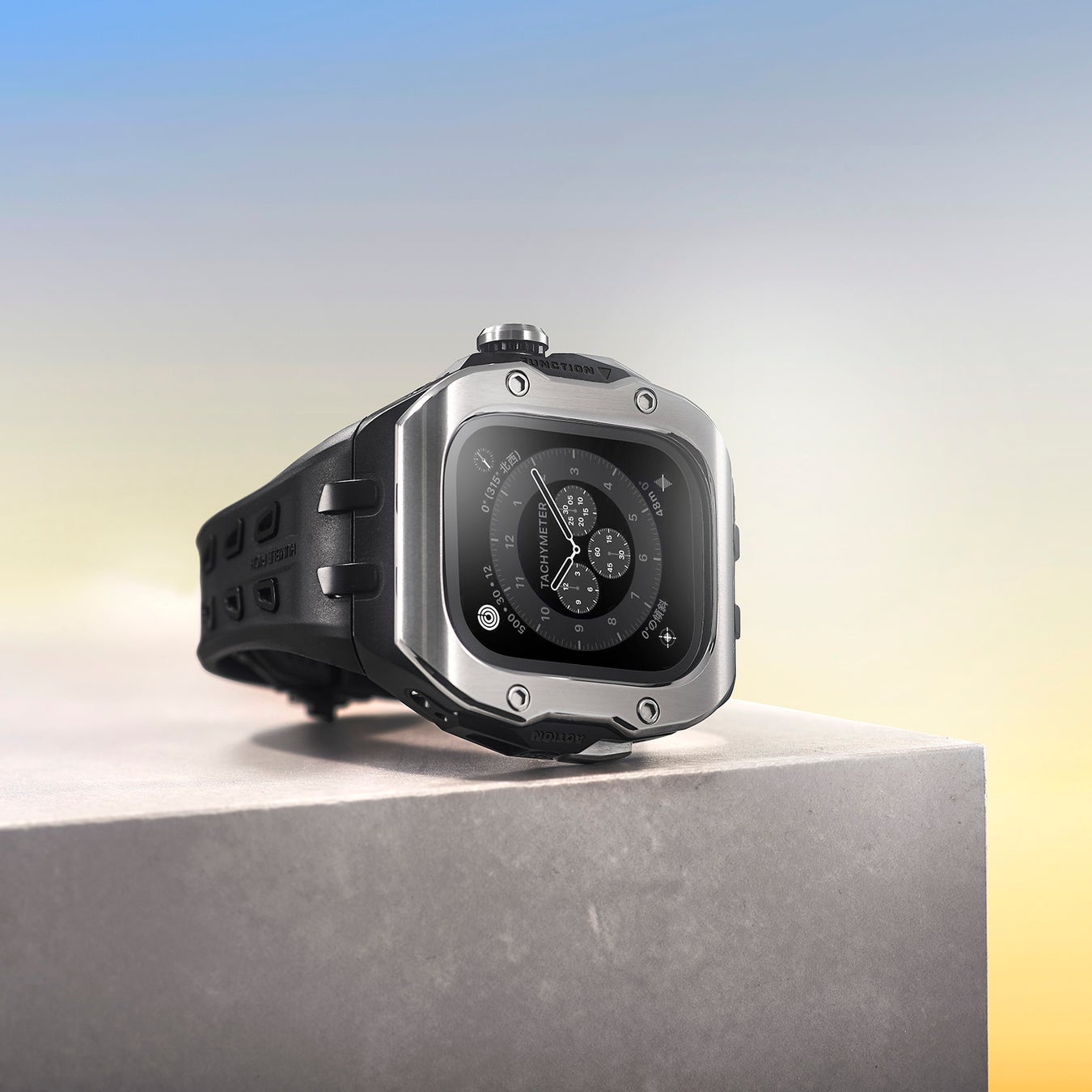 アクティブに活躍するApple Watch Ultra2 を、よりラグジュアリーに着飾ることができるアップルウォッチケースです。ステンレスベゼルタイプ3種、カーボンベゼルタイプ2種をラインナップ。カジュアルなApple Watchの外観を、機能をそのまま※に、ワンタッチで本格的な腕時計のように変えることができる忙しい大人の余暇に最適なコレクションです。