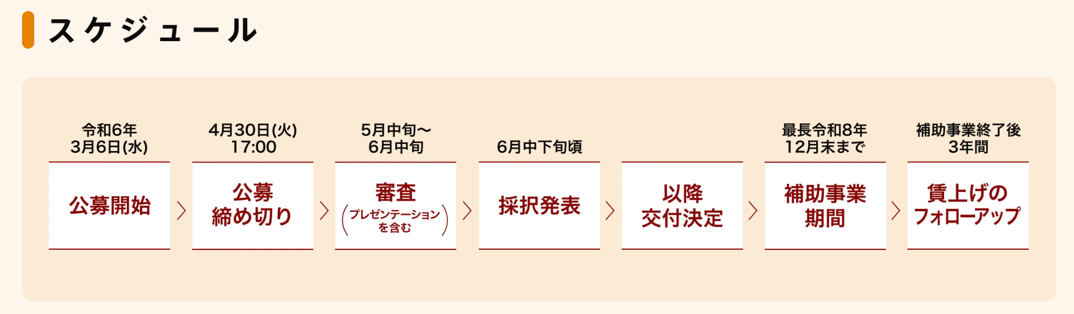 補助金の目的として挙げられている「人手不足の解消、省力化と賃上げの実現」のための取り組みになっているかどうかも重要な審査ポイントになっています。