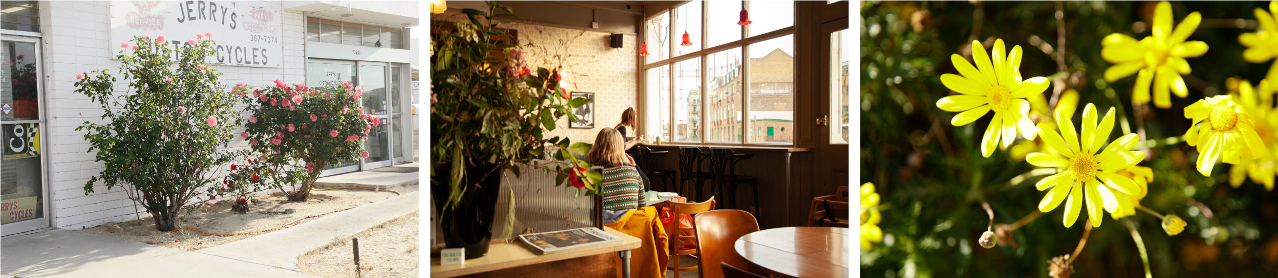 ひとつの店内で、女性がおうちの中と外で過ごす生活空間を演出しています。