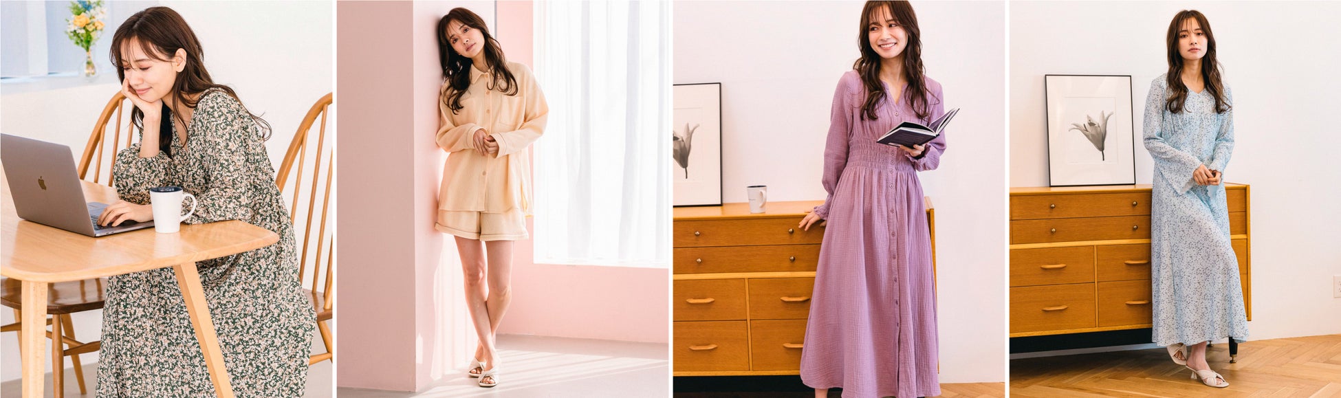 ガーゼを使用したアイテムや、ショーツセットのワンピースなど、着心地や女性の気分に寄り添ったアイテムを展開します。
