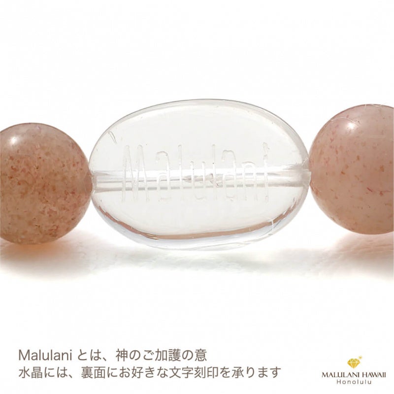 水晶には、ハワイ語で「神に護られた」という意味を持つ「malulani」と刻印。 持つ人に「神のご加護がありますように」との祈りをのせています。