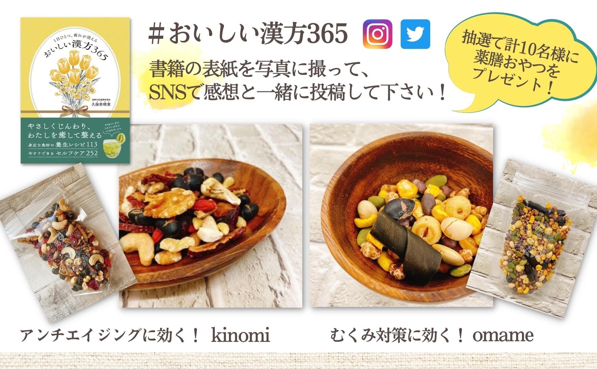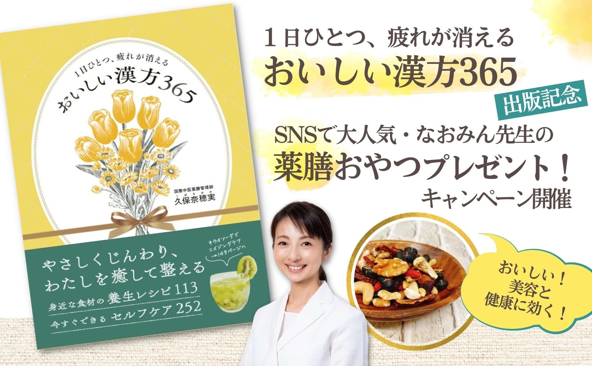 『1日ひとつ、疲れが消える おいしい漢方365』の出版を記念し、アンチエイジングとむくみ対策に効果的な「薬膳おやつ」のプレゼントキャンペーンを開催中です。ふるってご応募下さい!(2023年7月末まで)