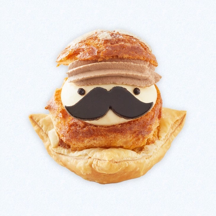 定番のパイカスターに、ひげの形をしたチョコレートを付けて、お父さんに見立てました。