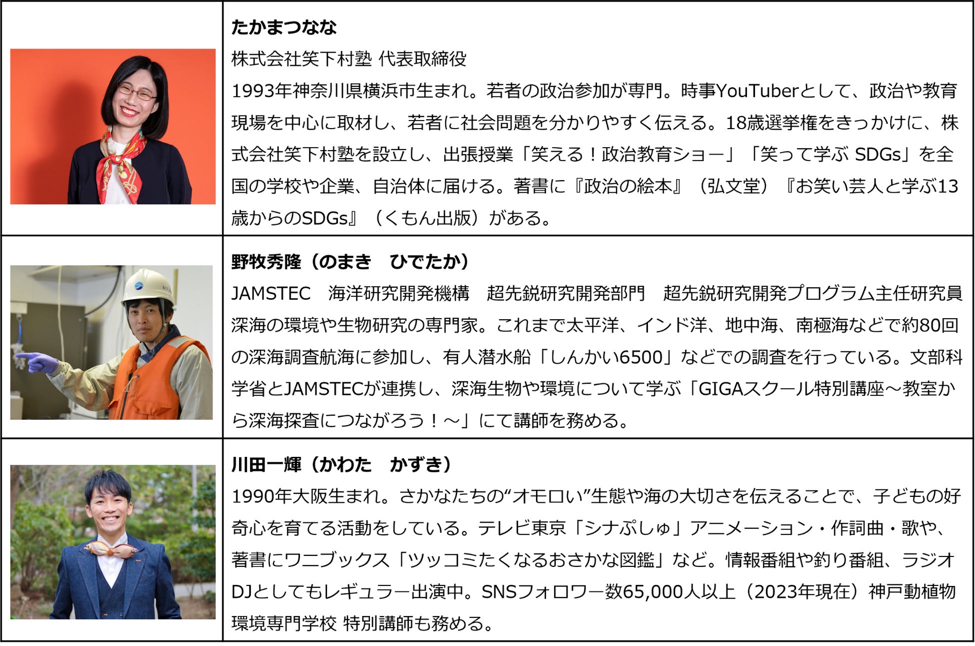 また、国内外から海洋に関する専門家が生出演。子どもたちに学びのヒントを与え、豊かで美しい海を未来へ引き継ぐアイデアを深めていきます。