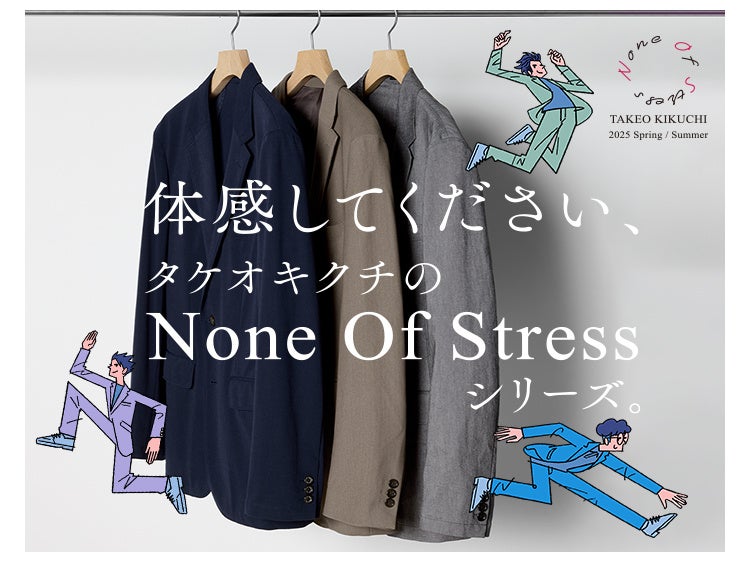 ワールドグループの株式会社エクスプローラーズトーキョーが展開するメンズブランド「TAKEO KIKUCHI(タケオキクチ)」は、昨年秋の登場以来、好評を博している『None Of Stressシリーズ』の春の新作ラインナップ特集ページを4月4日(金)より公式オンラインサイトにて公開いたします。