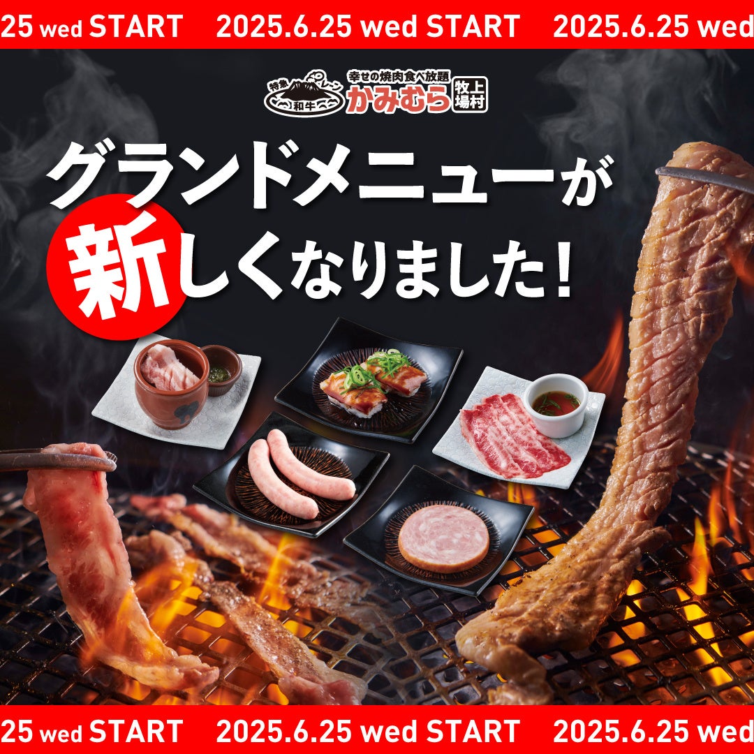 ワタミ株式会社(東京都大田区、以下ワタミ)と国内有数の和牛生産者であるカミチクグループ(鹿児島県鹿児島市)との合弁会社、ワタミカミチク株式会社(東京都大田区、以下ワタミカミチク)が展開する「かみむら牧場」は、2025年6月25日(水)より新グランドメニューの販売を開始いたします。