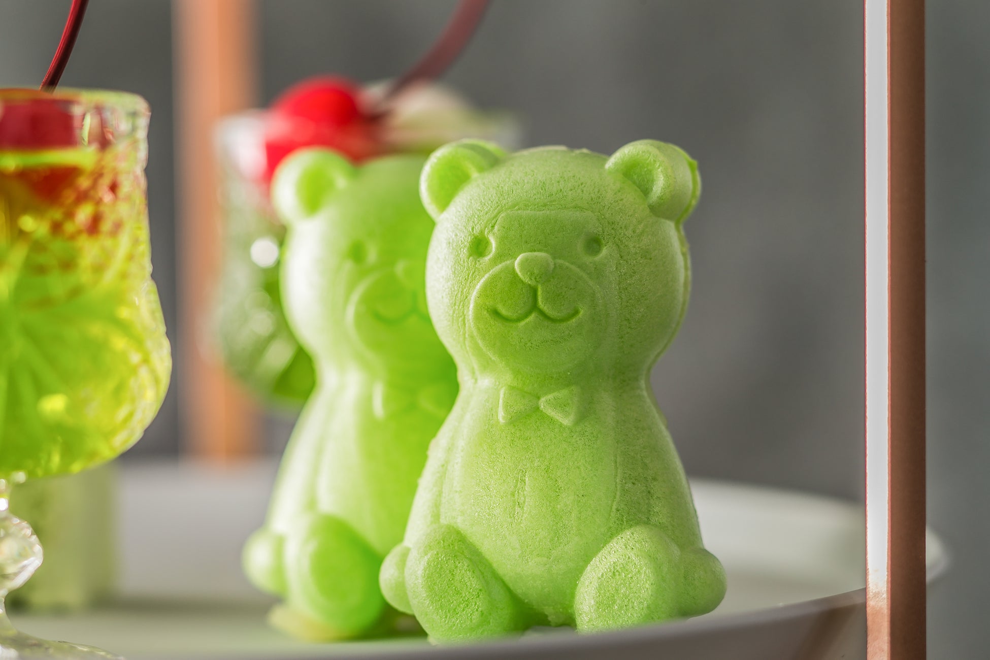 フレッシュメロン、白あん、メロンクリームをキュートなベアのもなかでサンド。