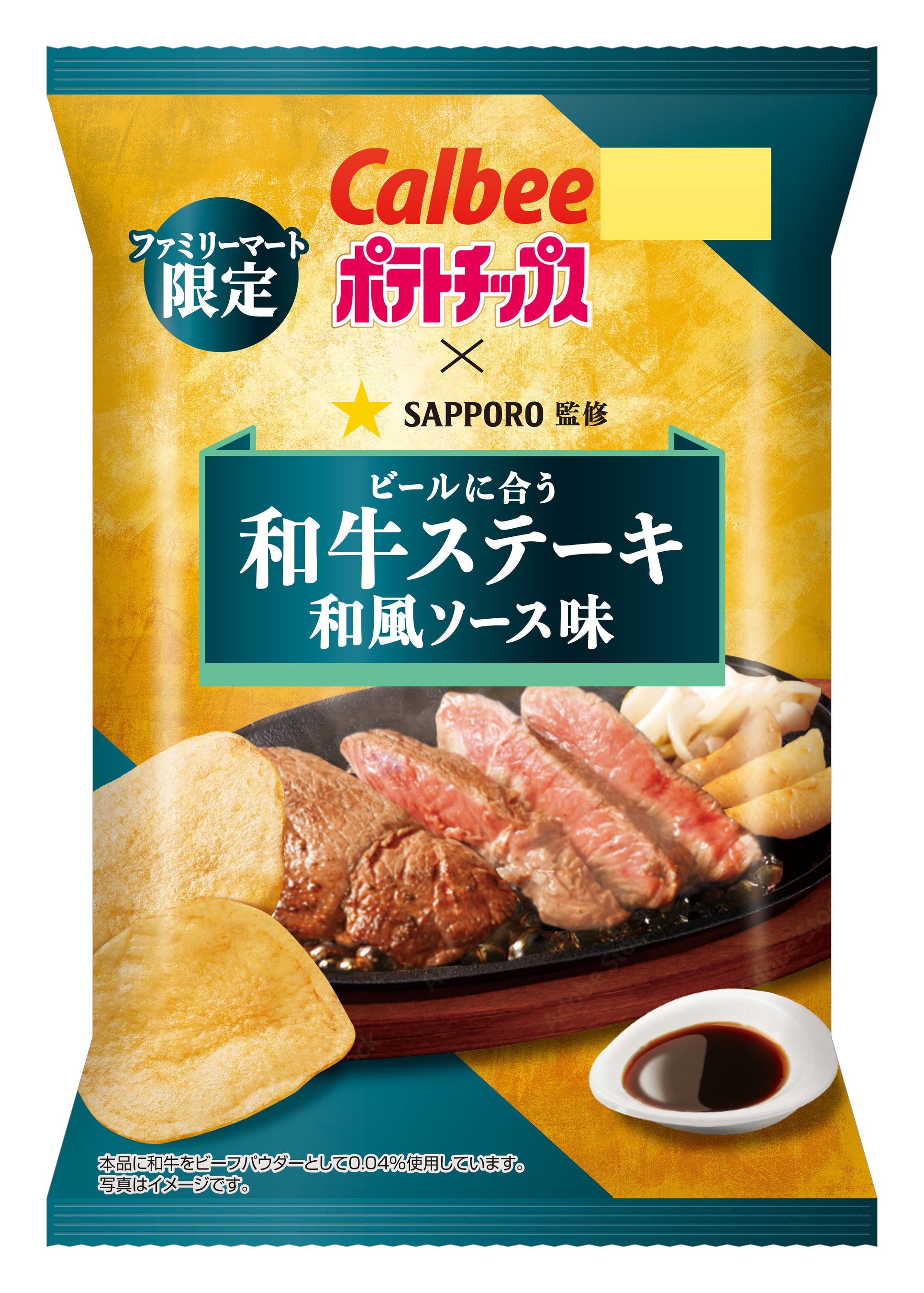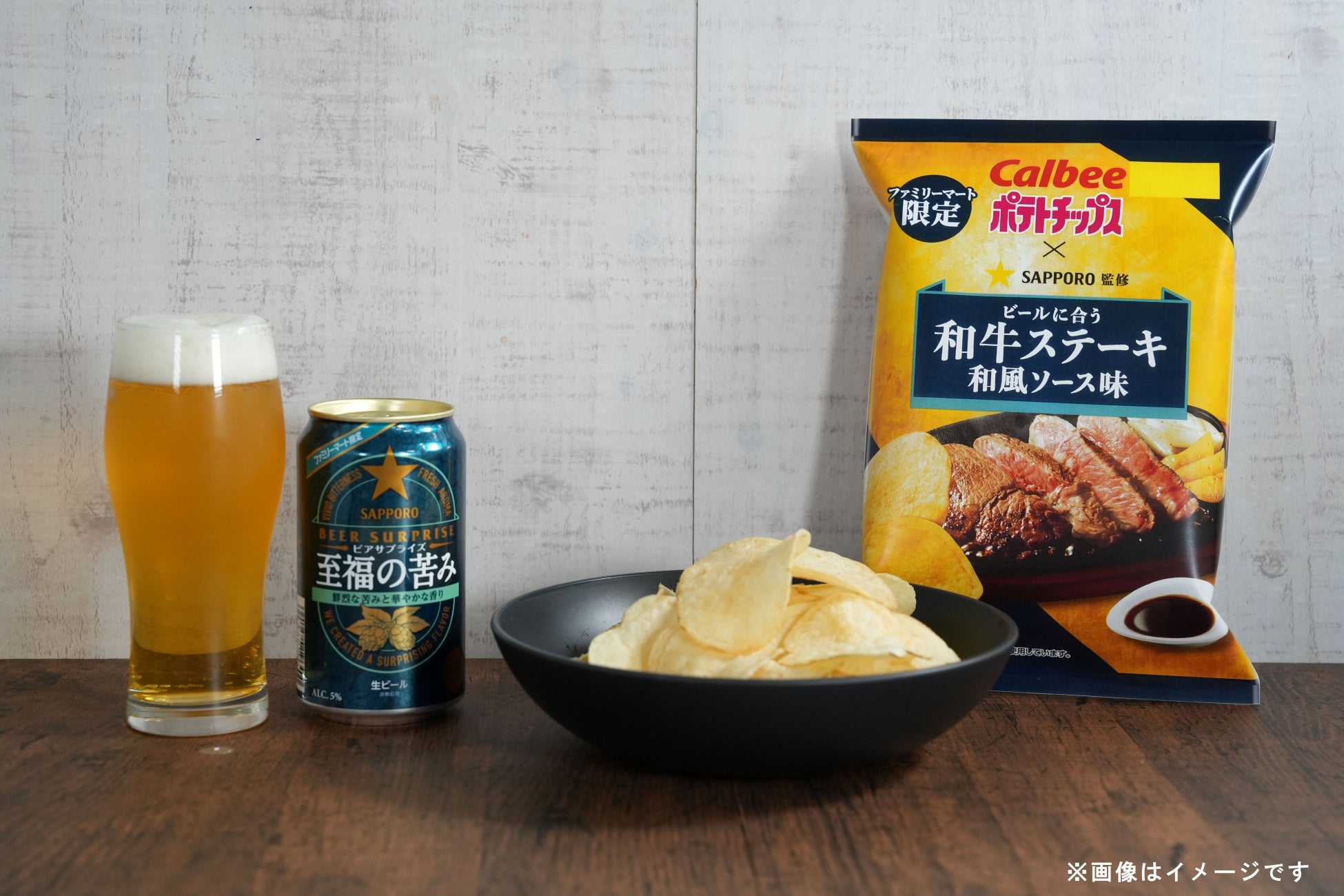 また、同日よりビールと合うポテトチップスとしてカルビー株式会社(本社:東京都千代田区、代表取締役社長:江原信)とサッポロビールと共同開発した「ポテトチップス 和牛ステーキ和風ソース味」を全国のファミリーマート16,300店にて発売いたします。(※)地域・店舗により、発売日が異なる場合がございます。
