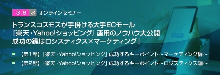 【トランスコスモスオンラインセミナー】トランスコスモスが手掛ける大手ECモール 『楽天・Yahoo!ショッピング』運用のノウハウ大公開 成功の鍵はロジスティクス×マーケティング!を3/8(水)に開催