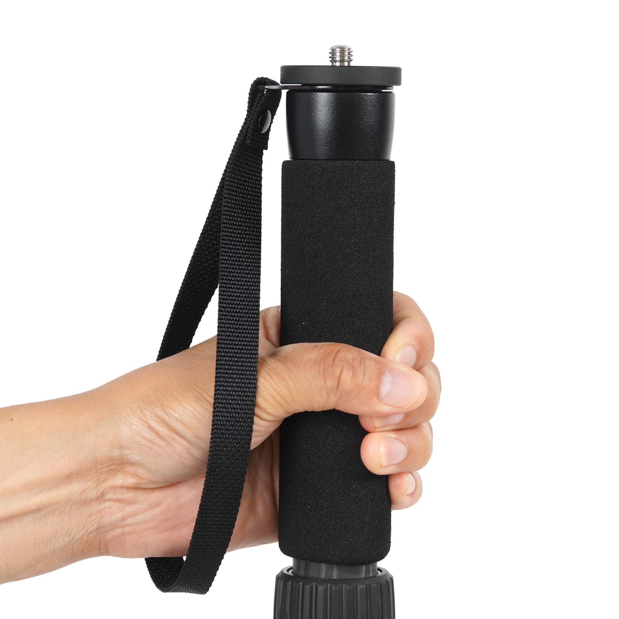 ストラップは、持ち運び時には手を通して落下防止に。撮影時は手を通すことで一脚の転倒防止に役立ちます。