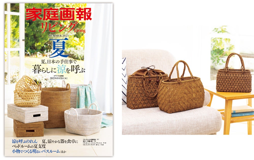 『家庭画報リビング 夏』では、涼を呼ぶ、かごやのれん、涼やかな器、手わざが光る工芸品など、夏アイテムを揃えました。そのほかにも涼を感じるリビンググッズや睡眠の質を向上させるための寝具など、夏に役立つアイテムをご紹介しています。