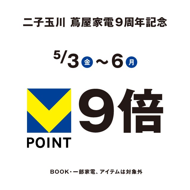 9周年記念 Vポイント9倍キャンペーン - 5/3(金・祝)~6(月・振)