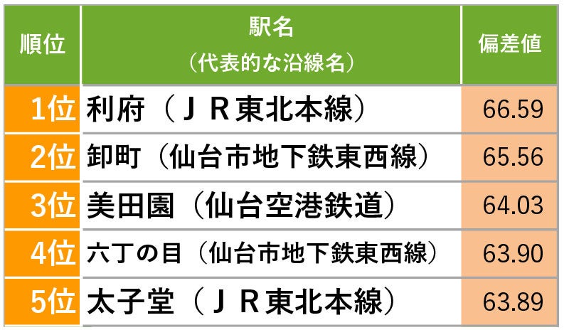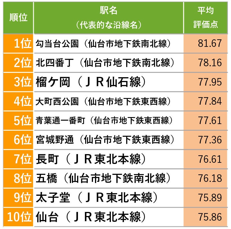 <駅>では「勾当台公園」が1位 <自治体>では「富谷市」が1位