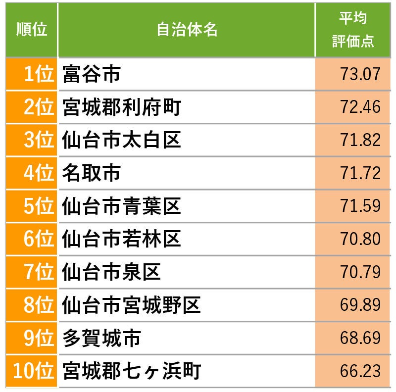 [宮城県]子育てに関する自治体サービスが充実している 自治体ランキング