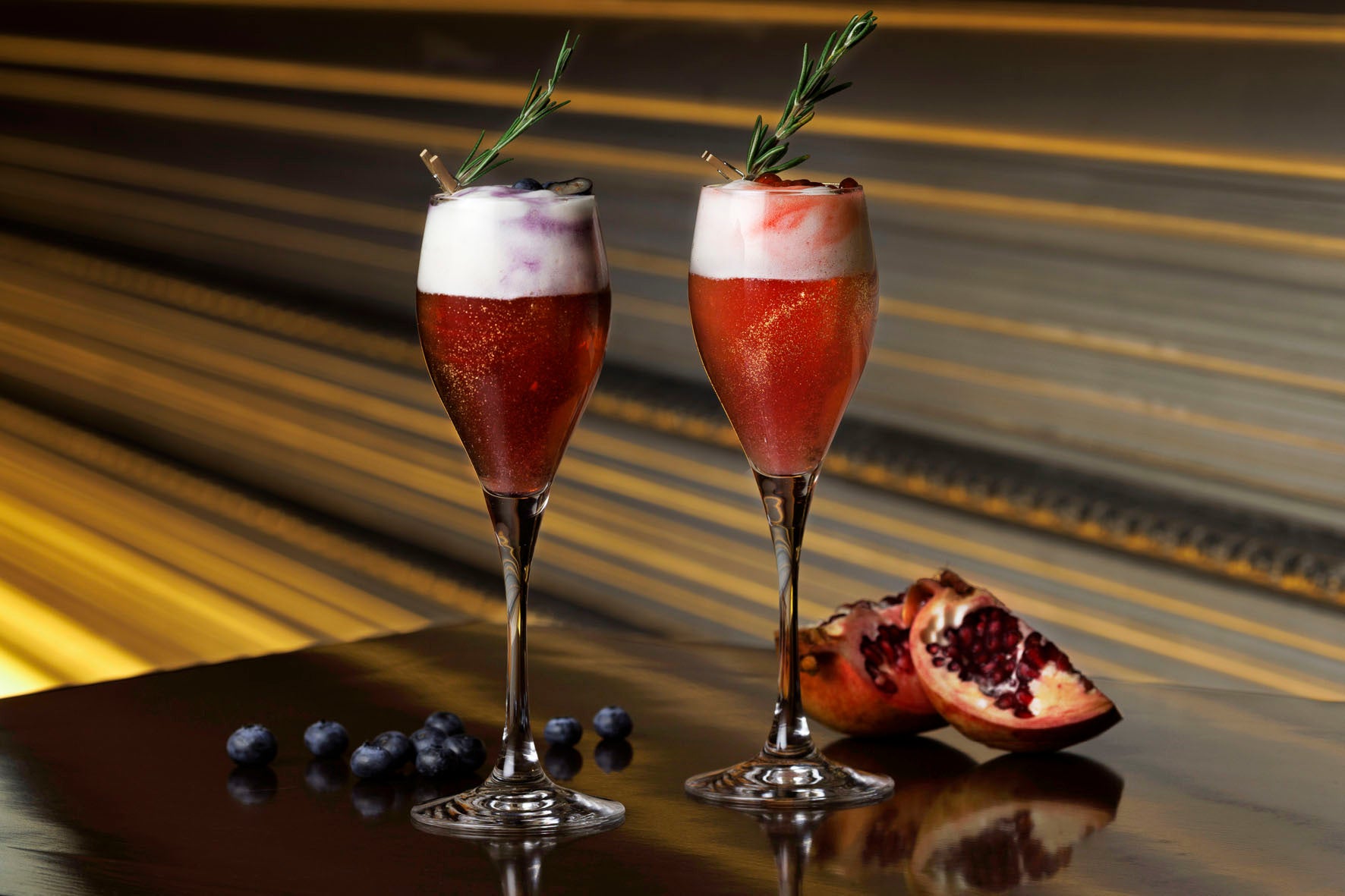 1951年以来受け継がれているバックバーの切り文字サイン 『STATION HOTEL』 が歴史を物語るカメリアでは、フェスティブシーズンにぴったりの煌びやかなシャンパーニュカクテルをご用意いたします。ザクロまたはブルーベリーからお好みで選べるフルーツフレーバーに、シャンパーニュを合わせて、シュワっと弾ける爽やかな味わいに仕上げています。