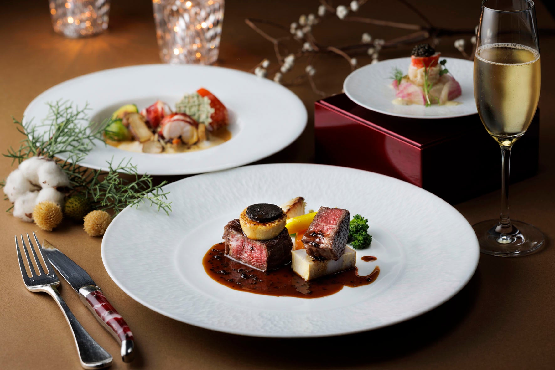 クリスマスを祝うのにふさわしい、希少な高級食材を堪能できるスペシャルコースをご用意しました。キャヴィア、九絵(クエ)、地蛤、オマールブルー、国産松茸など、魅力的な素材それぞれの美味しさを引き立てた至極のコースに仕上げています。