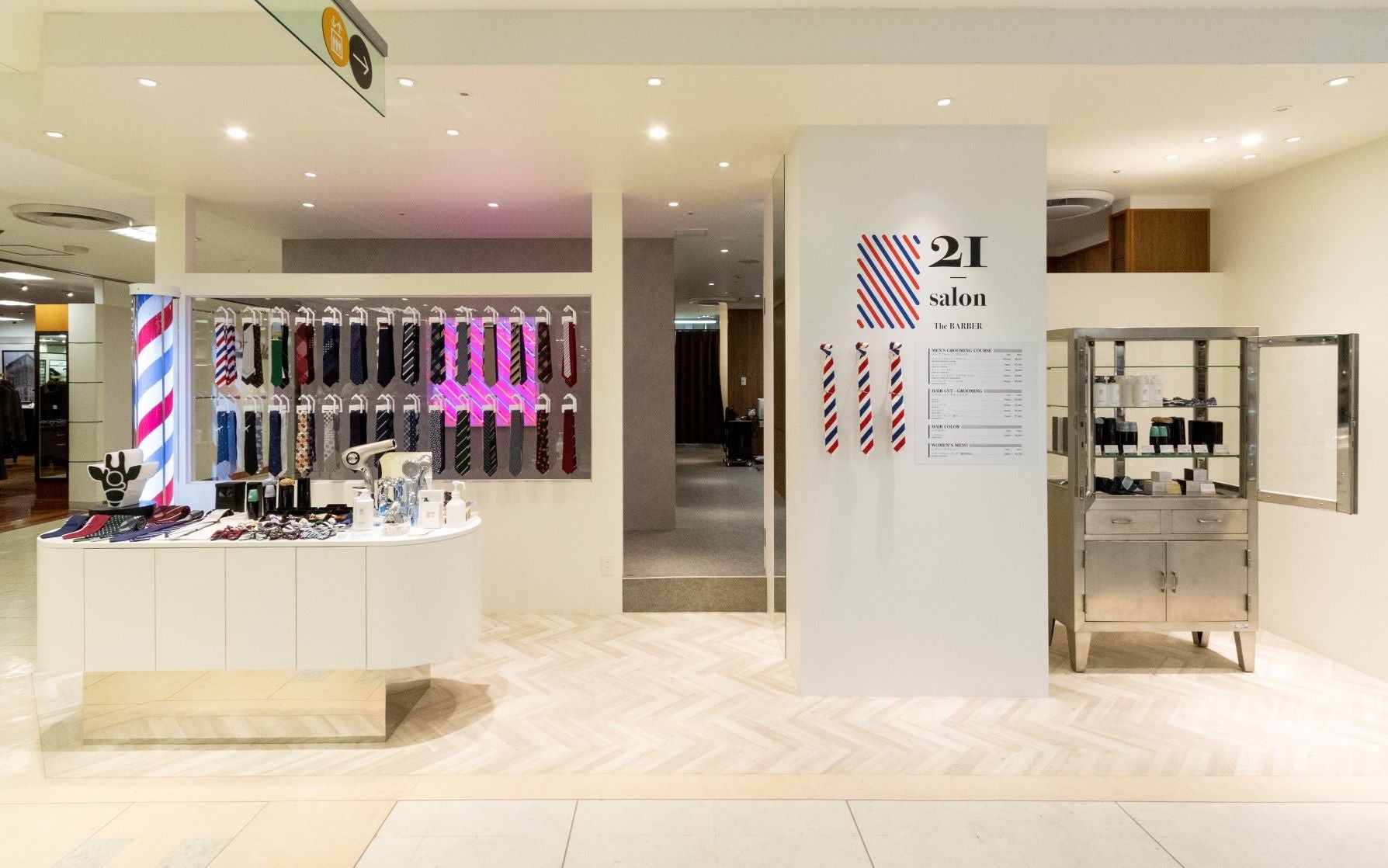 このリニューアルでは、更に身だしなみの提案に踏み込み、理容室「21_salon」を設置しました。基本の理容メニューに加え、ヘッドスパ、フェイシャルマッサージ、ネイルケアまで、メニューが充実した空間を提供しています。