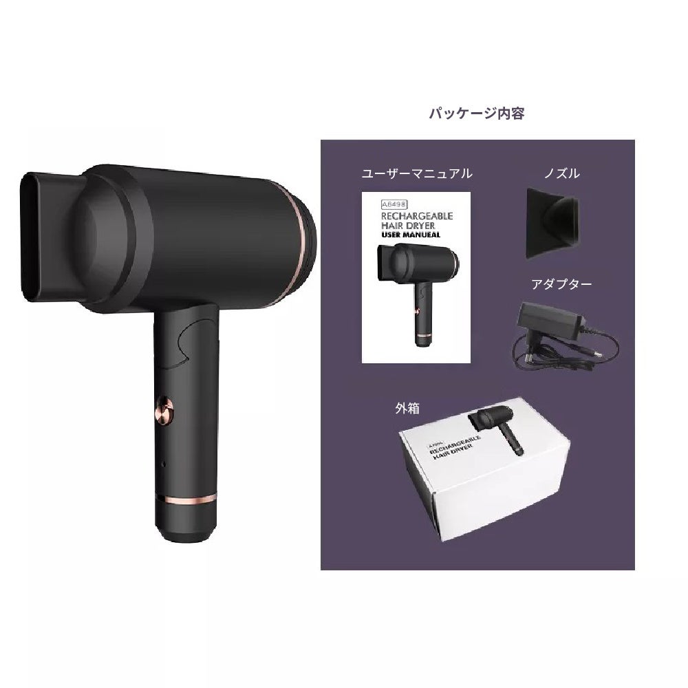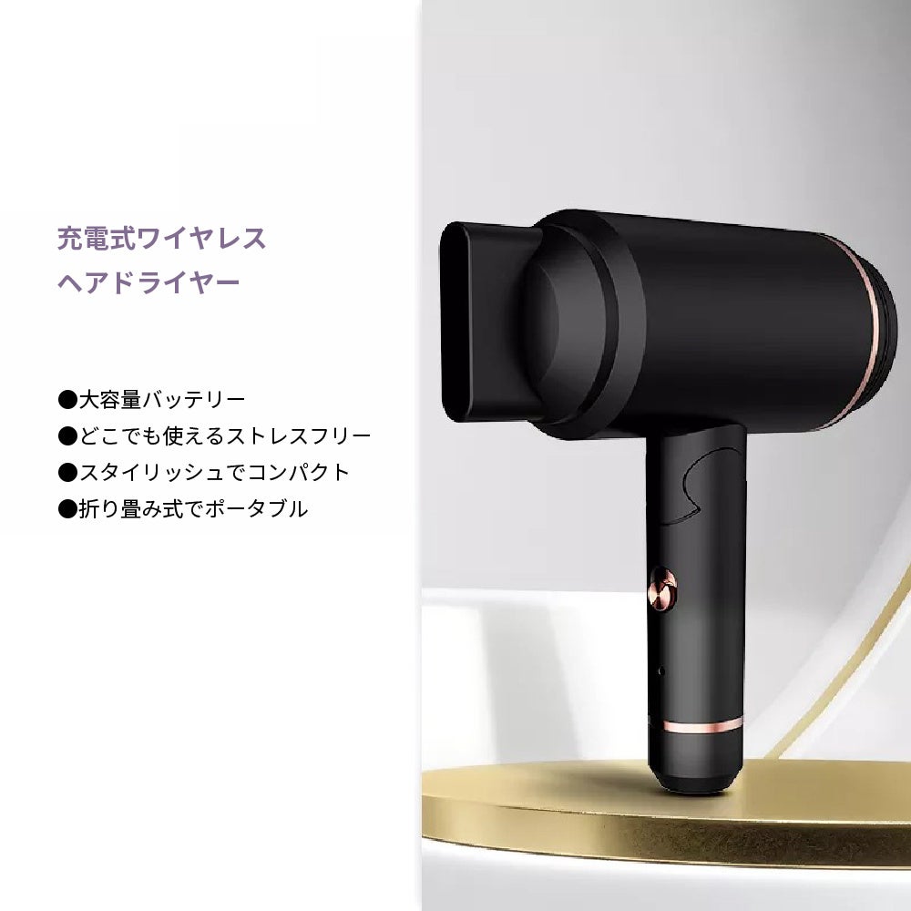 - どこでもワイヤレスで自由に使える、充電式ヘアドライヤー