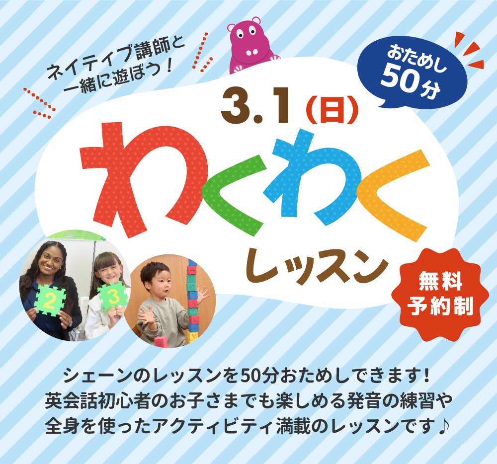 【シェーン英会話】3月1日開催!新年少~新小学6年生対象「無料おためしレッスン」申込受付中