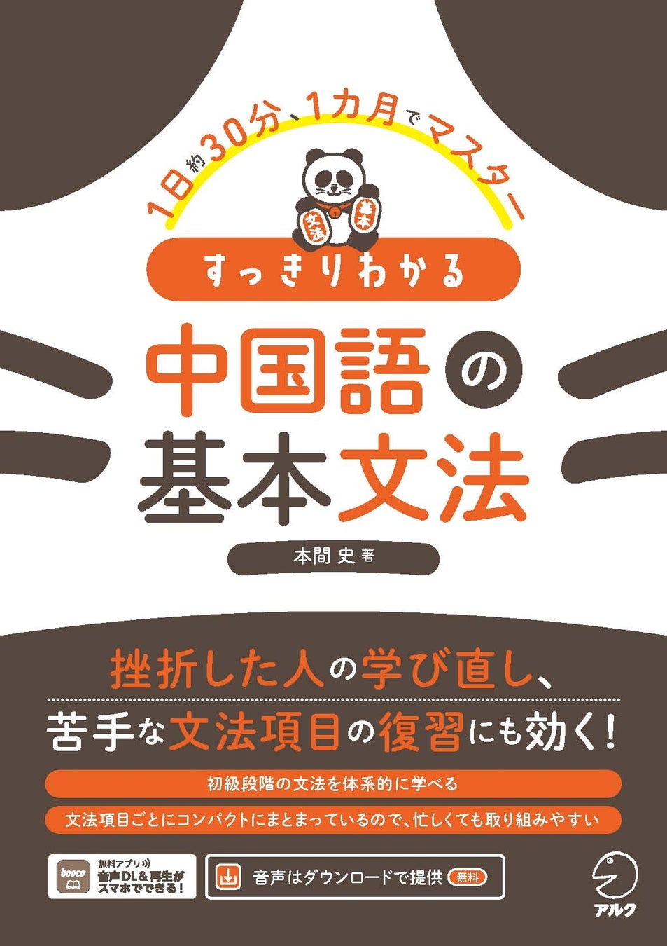 厳選した文法事項、簡潔な解説、絞り込んだ例文など、大事な点をコンパクトにまとめた文法書です。中国語を「聞き」「話し」「読み」「書く」土台となる文法事項をほぼカバーしており、より高いレベルに進むための中国語の基礎力を効率的に強化できます。入門レベルを終えた人、また既習事項の復習・整理用として初級・中級レベルの人に適しています。