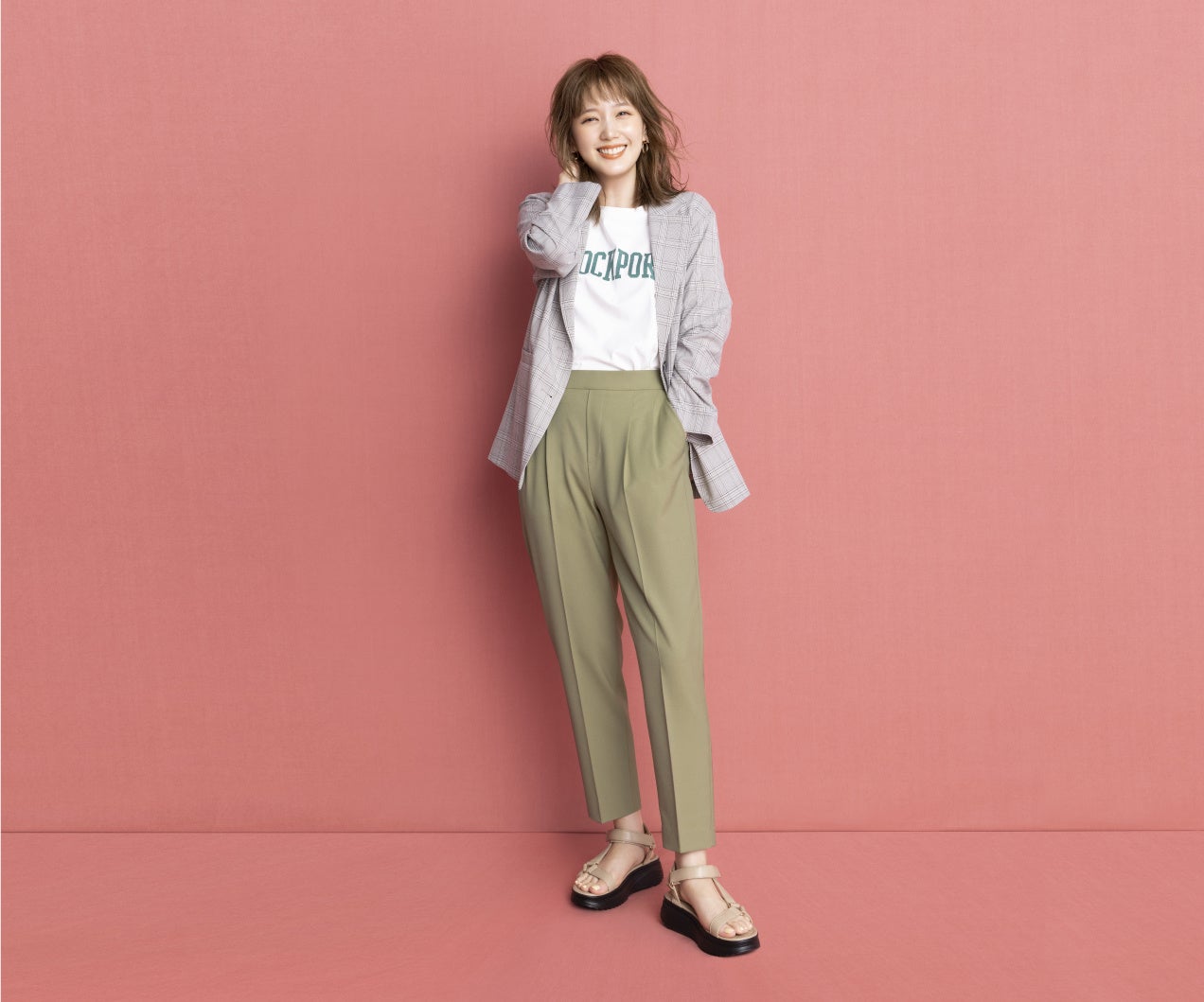 最近ではドラマやCM、YouTubeなど多方面で活動している本田さんですが、今回は全5種類のコーディネートを着こなし、多彩な表情を見せながら華麗にポージングを決めるなど、モデルとしてのプロフェッショナルな姿を披露していただきました。当日は、本田さんの可愛すぎる笑顔にスタッフも思わずうっとり。ピンク色のセットと相まって、スタジオに春が訪れたようでした。