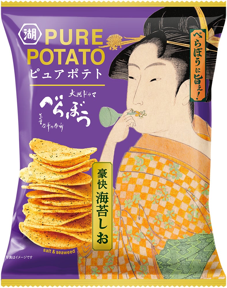 【圧倒的な海苔の風味で“べらぼう”に旨ぇポテトチップスが新登場!】大河ドラマ「べらぼう~蔦重栄華乃夢噺~」の放送をきっかけに誕生した逸品「ピュアポテト 豪快海苔しお」 7月14日新発売