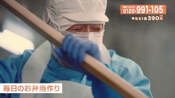 製造されたお弁当・お惣菜は冷蔵のまま、担当の「まごころスタッフ」が「自分たちの手で」お客さまの元へお届けしています。TVCMでは、メニュー開発からお届けまで一貫して「自分たちの手」にこだわるスタッフの姿をお伝えしています。