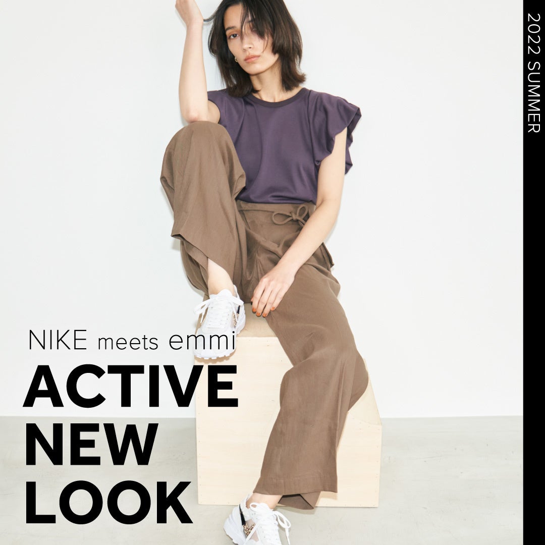 emmiの新作アイテムとNIKEセレクトアイテムを合わせ、女性らしさは残しつつ、アクティブなムードを演出する8LOOKを紹介