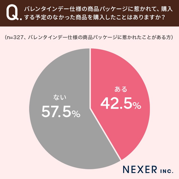 ■42.5%がバレンタインデー仕様の商品パッケージに惹かれて、購入する予定のなかった商品を購入したことが「ある」