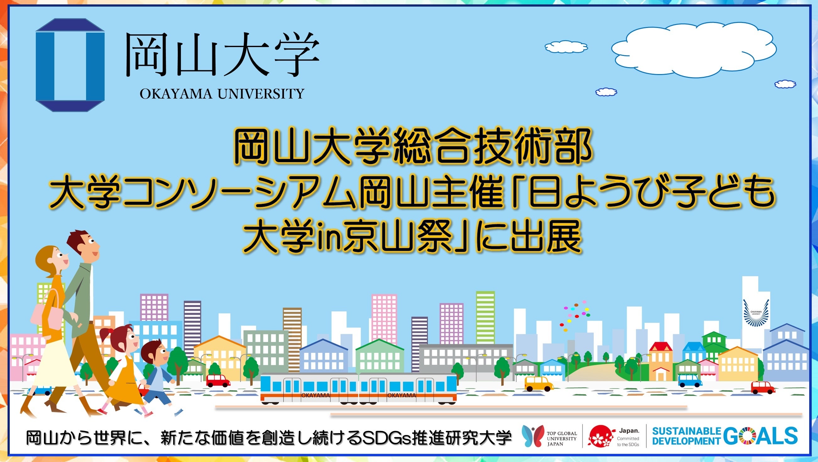 国立大学法人岡山大学(本部:岡山市北区、学長:那須保友)の本学総合技術部は、2023年6月11日に岡山県生涯学習センター(岡山市北区伊島町)で開催された大学コンソーシアム岡山主催の令和5年度「日ようび子ども大学in京山祭」に出展しました。
