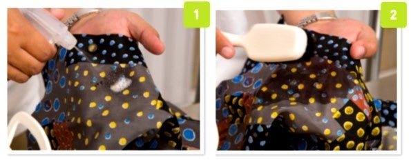 1.中性洗剤と水を1対1で溶き、シミに吹きかける