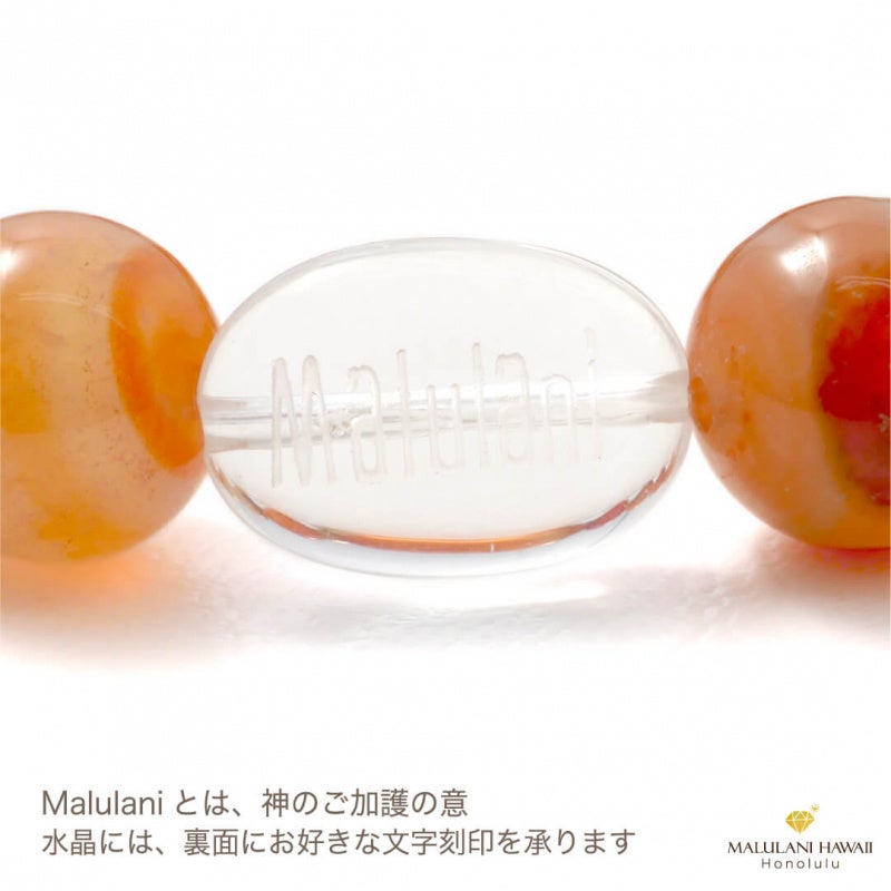 水晶には、ハワイ語で「神に護られた」という意味を持つ「malulani」と刻印。 持つ人に「神のご加護がありますように」との祈りをのせています。