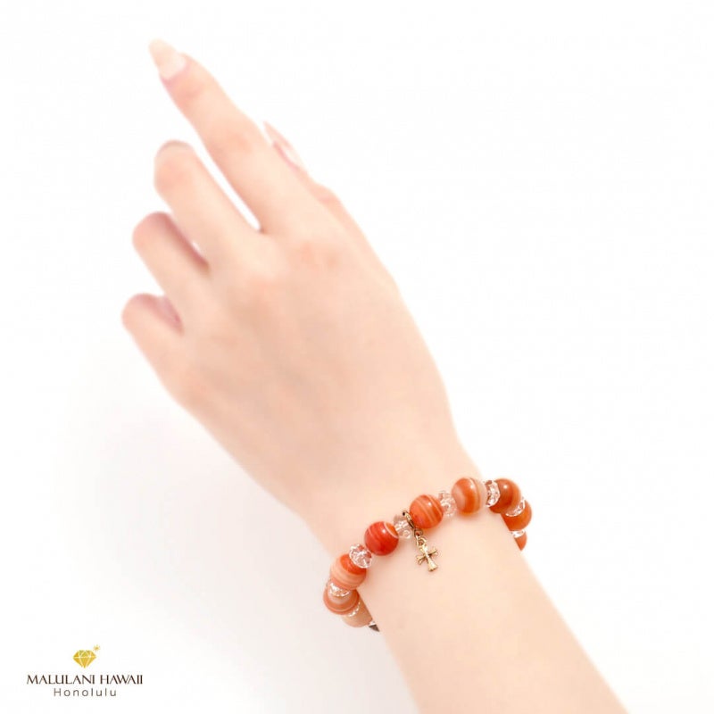 清涼感あふれるオレンジカラーが魅力のブレスレットは、持ち主の心を明るく照らし、円滑な人間関係や新鮮な絆をサポートします。