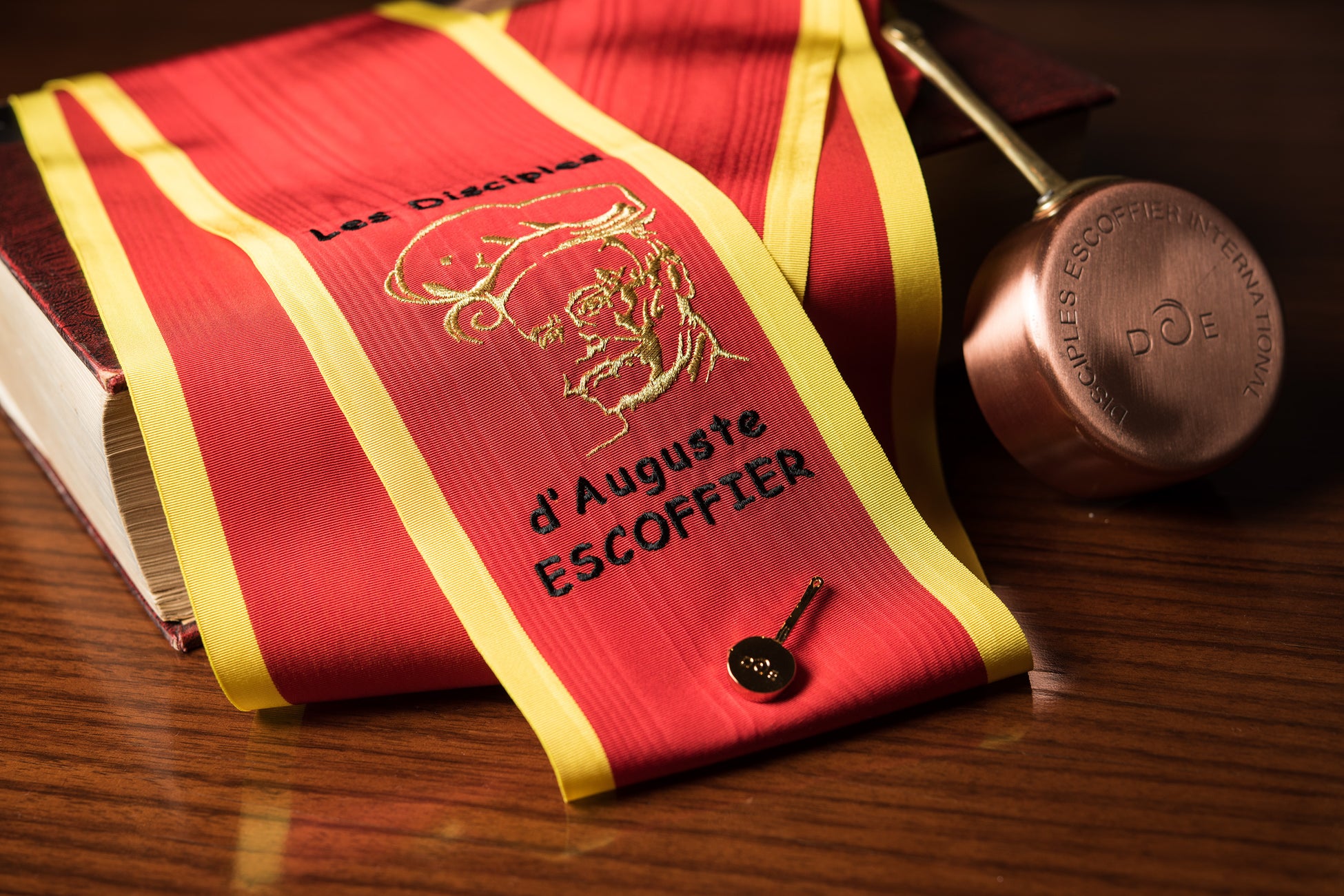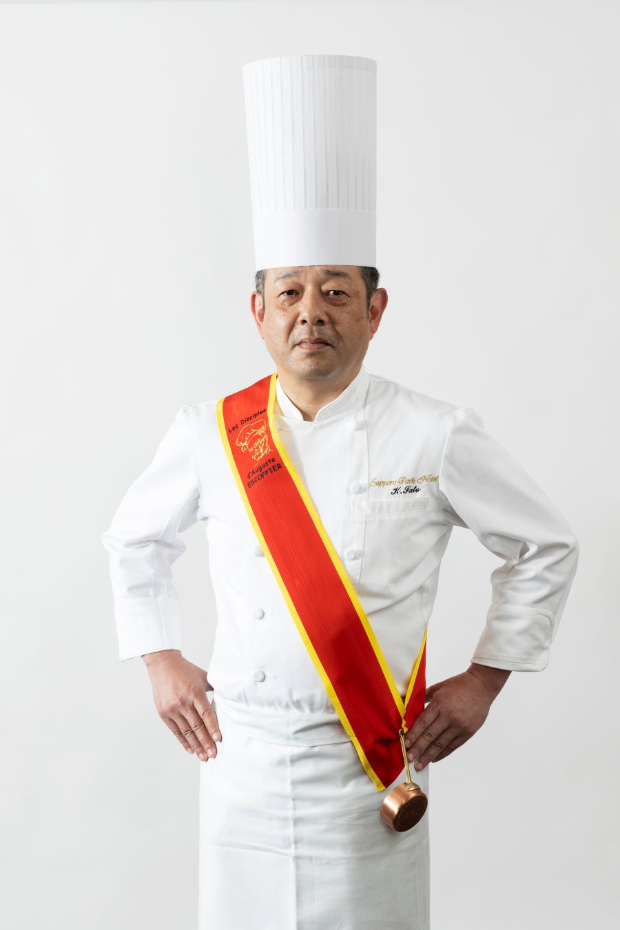 フランスの著名な料理人であり、現代料理の礎を築いたオーギュスト・エスコフィエ氏(1846~1935)の精神を引き継ぎ、日本におけるフランス料理の隆盛に尽力することを目的として設立されたのが「日本エスコフィエ協会」。「ディシプル(弟子の意味)」を授与されるには、卓越した技術と経験が求められ、協会理事会による厳しい審査もあり、フランス料理人としてのステータスといわれる。 経験豊かな料理長のみが許されるその協会の正会員を、「レ・ディシプル・ド・オーギュスト・エスコフィエ」と呼ぶ。