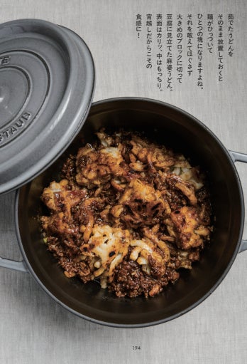 巻末には、うどん好きのシェフ3名が考案した「うどん創作レシピ」を掲載。茹でたうどんを焦げ目がつくぐらい焼き固め、絶妙な食感に仕上げた『麻婆うどん』や、スイートチリソースとナンプラーでさっぱりと仕上げた『タイ風汁うどん』等、個性豊かなレシピで、うどんの新しい楽しみ方も提案しています。