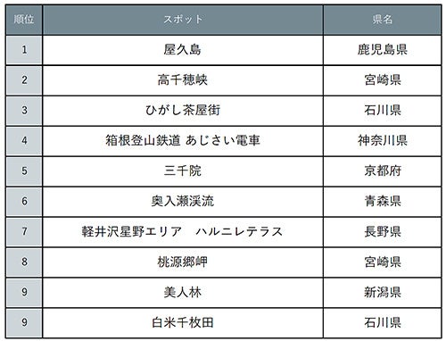 5月に入り、梅雨入りの話題が聞こえ始める季節。梅雨時期は、おでかけが少し億劫になってしまいがちですが、実は日本全国には雨だからこそ出合える、魅力的な絶景がたくさんあることをご存じでしょうか。今回、雨の日特に魅力に感じる絶景スポットについてアンケートを実施したところ、鹿児島県の「屋久島」が1位となりました。広大な自然の中で、天候や季節によってさまざまな表情が見られることでも人気のスポットです。そのほか、雨露に輝く新緑や苔、この時期ならではのあじさいとの共演など、雨の日も晴れやかな気持ちになれる絶景スポットが多数ランクインする結果となりました。